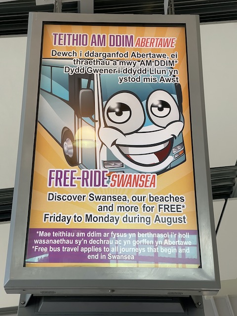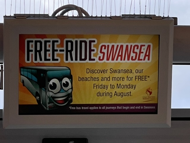 It all kicked off yesterday, Friday 30th July, so I hot footed it over to Swansea to experience the free ride offer, not least because it was a great opportunity to return to one of my favourite parts of Wales, the splendid Gower Peninsular which falls within Swansea Council’s jurisdiction and therefore is included in the free travel zone.