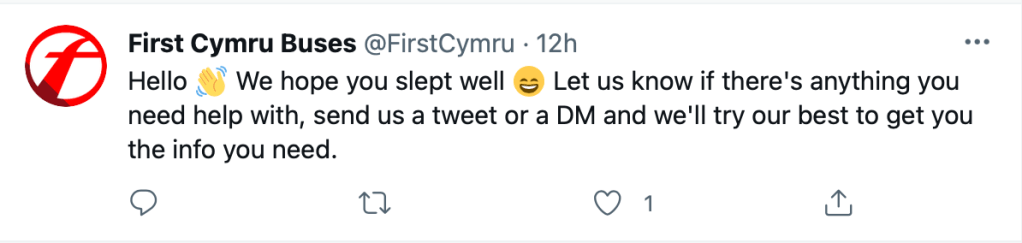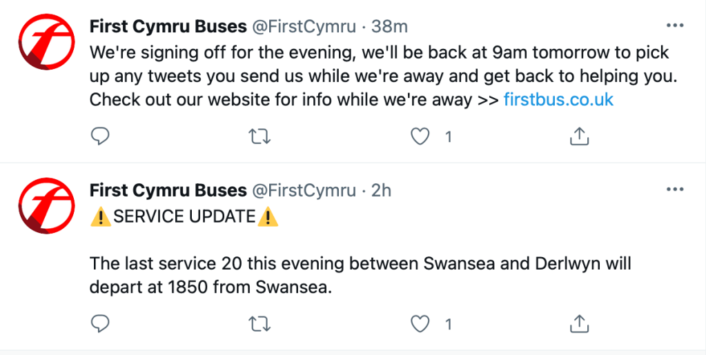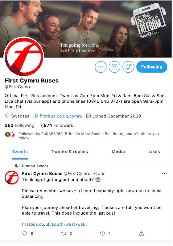 Which was a bit of a contrast with First Cymru’s Twitter feed which has a pinned tweet from 6th June warning rather negatively you might not be able to travel by bus; and no mention yesterday’s revolutionary free travel deal.