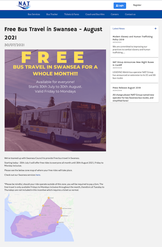 That’s exactly what’s happened in Swansea where councillors have funded completely free bus travel for everyone within the council’s boundary for four consecutive days over long weekends – Friday, Saturday, Sunday and Monday – throughout the month of August.