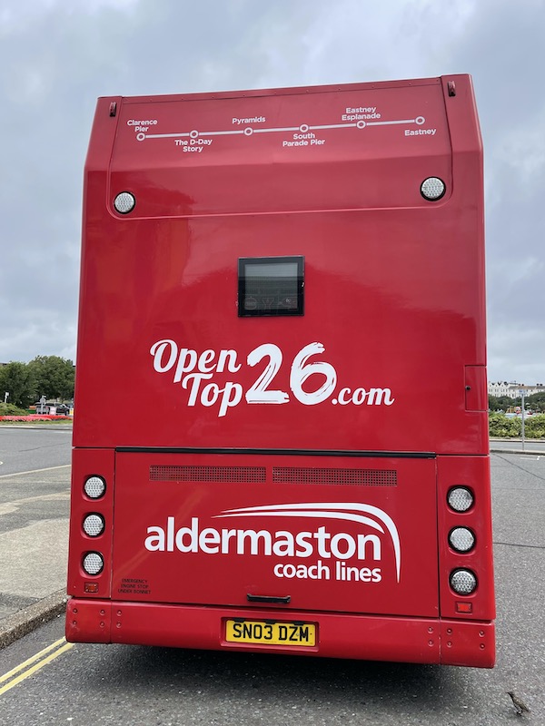Route 26 (actually it’s called OpenTop26.com) began running daily along Southsea Esplanade for the school summer holiday with an hourly timetable on 24th July so I thought it was high time I caught up with it and take a ride to see how it’s doing.