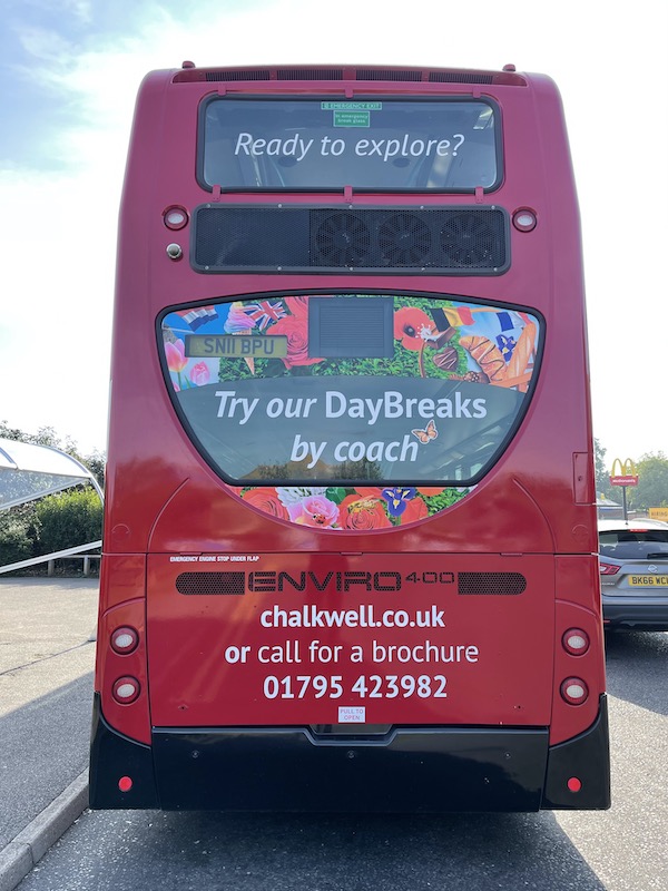 … along with bespoke adverts promoting tickets for scholars and the company’s coach tours.