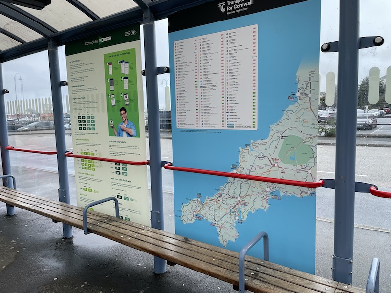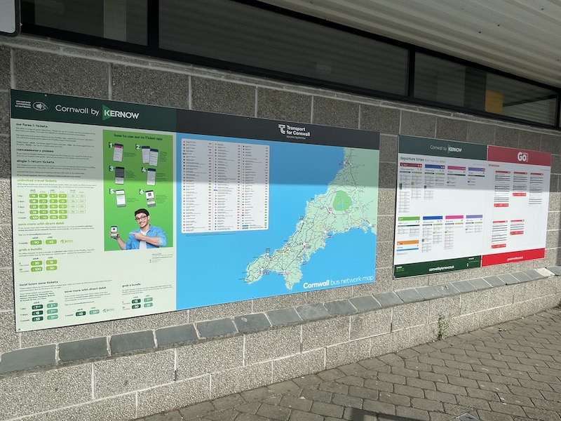 But then I looked more closely and realised it was a display showing timetables of either First Kernow (in green) or Go Cornwall Bus (in red), whereas you’d be forgiven as a passenger for thinking the red colour and brand represented Transport for Cornwall.