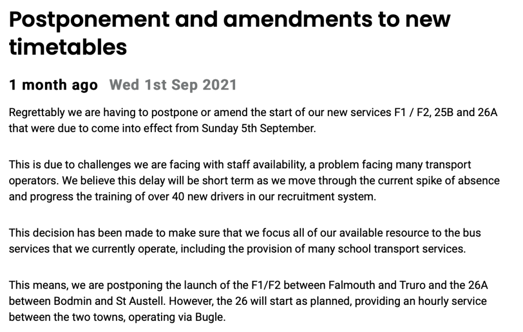 Go Cornwall Bus’s website indicates this “will be achievable in October”.