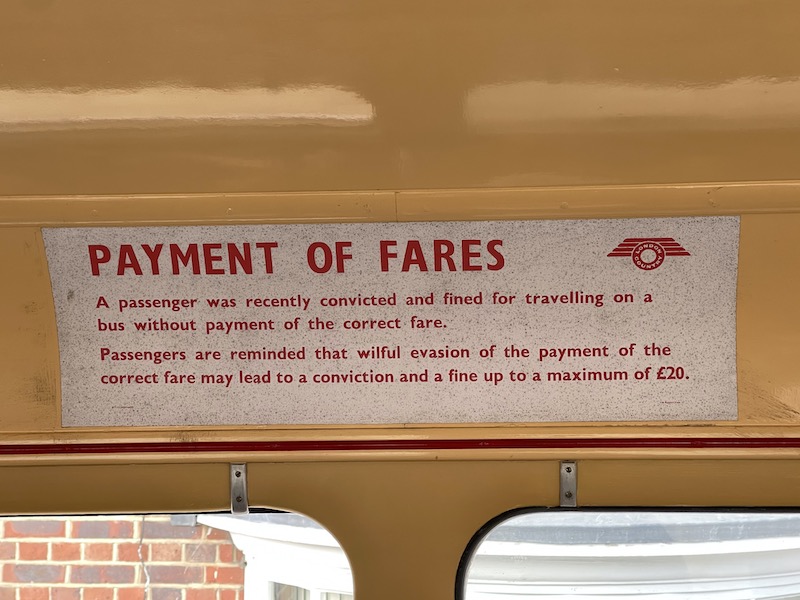 RML 3 was also displaying an original fare chart from 1966 when the cheapest fare was 4d, which I remember well as the fare I paid to go to school, and the maximum for a journey from Putney Bridge Station to Epsom as 2/11.
