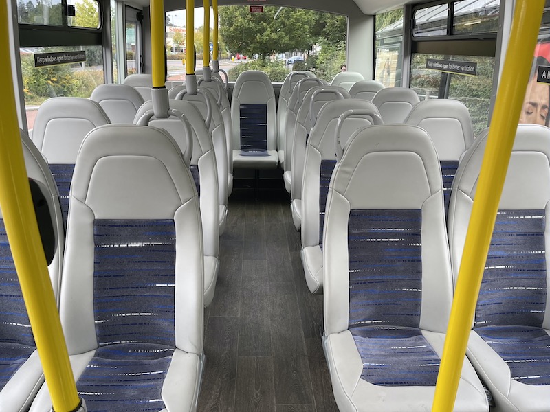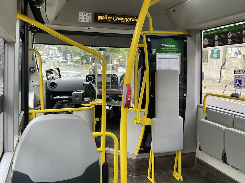 Last September when I rode the same route it was operated by TrustyBus and was rather down at heel. Since Stephensons won the tender in July they’ve allocated a very smart looking Mellor Coachcraft Strata Ultra which I know for sure is the bus type because the interior electronic sign was telling me so on a continuous scrolling loop.