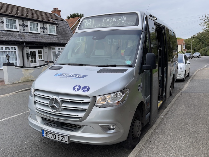 Vectare have allocated one of their smart looking Mercedes Sprinters which along with Stephensons’ allocation on the 418 means tendered bus routes in this part of Essex have never looked better.