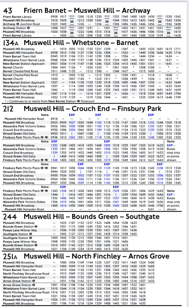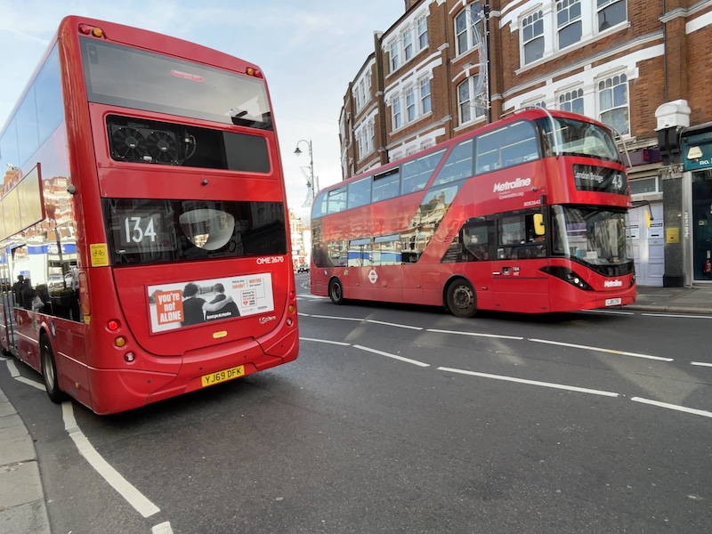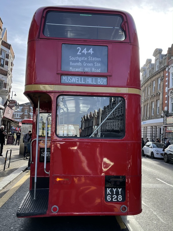 Compared to the running day on long routes 65 and 93 earlier this year it was handy to have the routes all connecting at Muswell Hill’s delightful terminus in the middle of the roundabout where five busy roads converge.