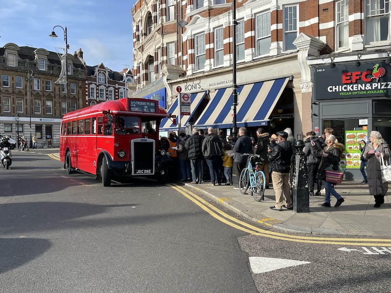This brought the buses right into the heart of the local community in Muswell Hill’s commercial centre which is bustling and thriving even on a Sunday and once again it was lovely to see members of the public, young and old, taking an interest as the buses passed by.