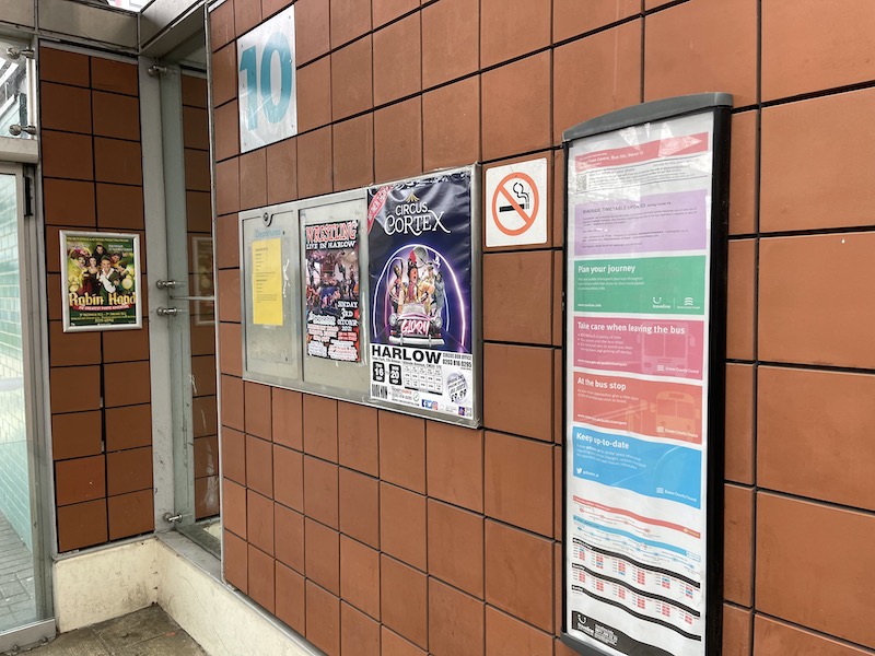 Harlow Council think so poorly of themselves, they can’t even be bothered to sort out the defaced lettering on the bus shelters at the southern end of the main bus station building and from where many of the departures leave. These have been in this state for at least the last couple of years.