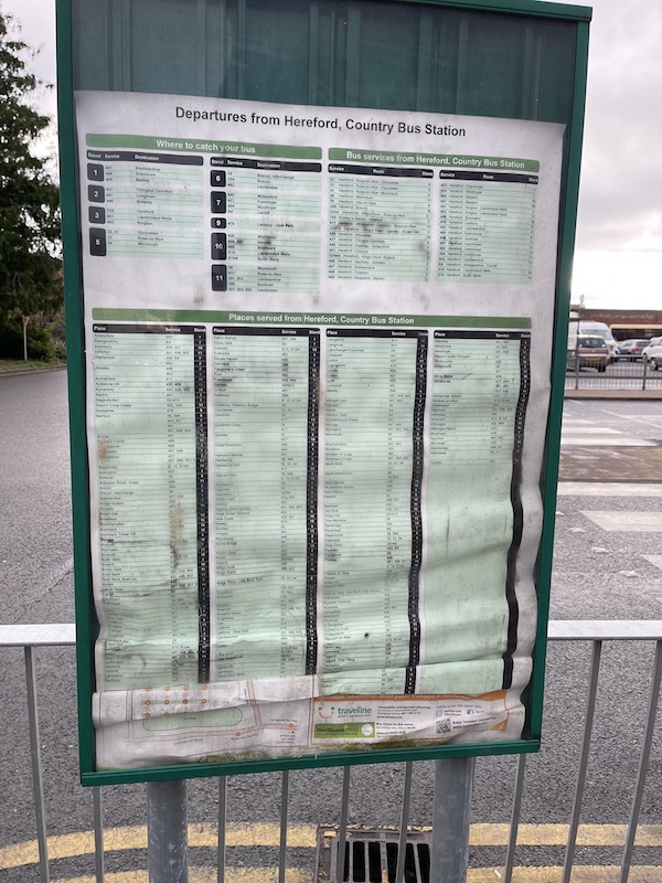 At the moment what we are seeing in Hereford is going on in much of England. The constant cutting and changing of services which undermines any confidence in bus service and just drives even more passengers away in fact in many areas of England the service have cut to the level where they are of no use a all to most people. The only passengers they really have left are concessionary pass holders and school children. Even the cost of providing school transport has reached the point where councils are looking at lower cost options
