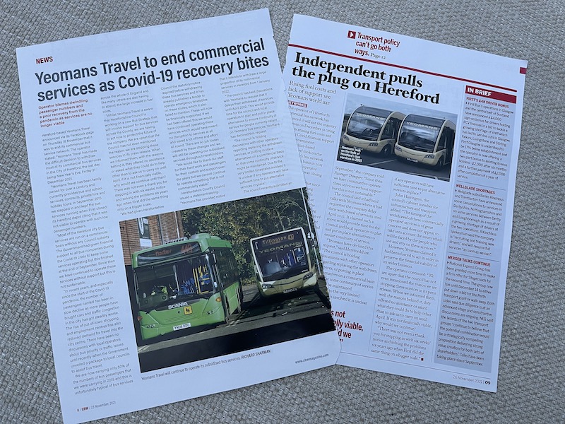 In a posting on its Facebook page Yeomans blames falling passenger numbers even before Covid “as more people have bought cars and traffic congestion in the city has got steadily worse”. It goes on to explain with Covid financial support having ended in September and passenger levels at 50% of 2019 levels “this is not sustainable”.