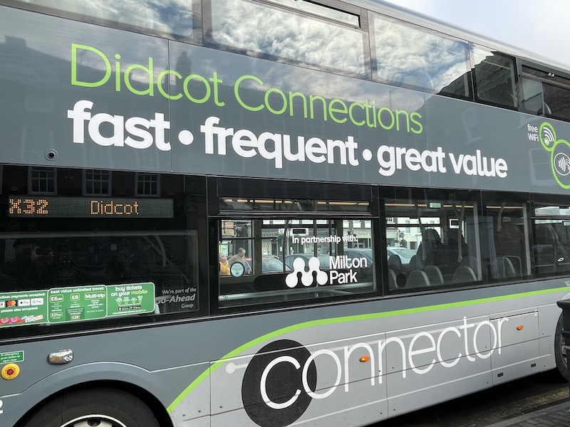 These provide links to and from Oxford city centre direct (every 20 minutes) on route X2, Oxford’s city centre and John Radcliffe Hospital, Harwell Campus and Wantage (half hourly) on route X32, Abingdon (half-hourly) and Wallingford (hourly) on route 33, and Wantage and Grove (half hourly) on route X36. As all these routes also serve Didcot Parkway, you can appreciate there’s a very frequent service in addition to the bespoke local circular routes 99/99A/99C running half hourly from Didcot Parkway.