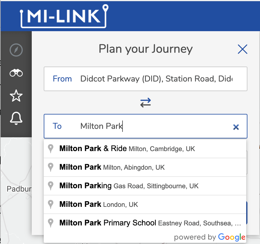 During my train journey down from Paddington to Didcot I thought I’d give the “Mi-link bespoke journey planner” a try to see how convenient the bus connections were from the station to Milton Park. I went to the Mi-Link.uk website where you can easily find the “Plan you journey” tab.
