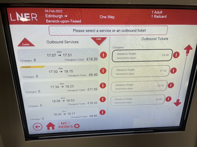 I can only conclude the ticket machines in Edinburgh station overseen by LNER show a bias to tickets for LNER operated trains, which doesn’t strike me as either fair or helpful.