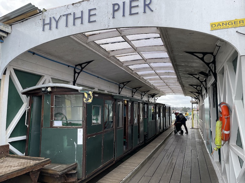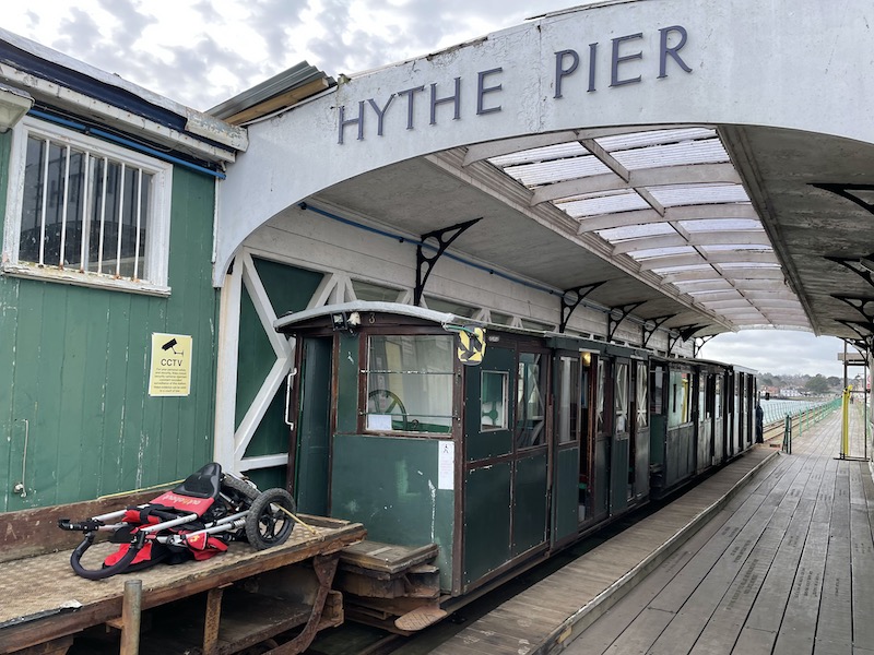 Another reason for taking a trip on the Hythe ferry is your fare includes a ride on the Pier Railway – billed as “the world’s oldest continuous operating pier railway”.