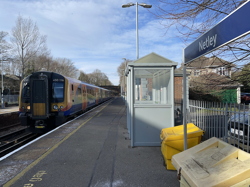 I then caught the hourly SWR stopping train to Portsmouth & Southsea as far as Netley on the north side of Southampton Water. It has a rather splendid station building now mostly given over to other uses (fancy dress hire on the first floor) …