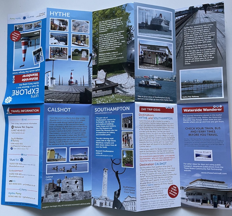 The multi-modal Waterside Wanderer ticket is an initiative spearheaded by the Three Rivers Community Rail Partnership – a great band of dedicated volunteers who do some amazing work in the Southampton and surrounding area to promote rail travel and look after the appearance of many stations in the area.