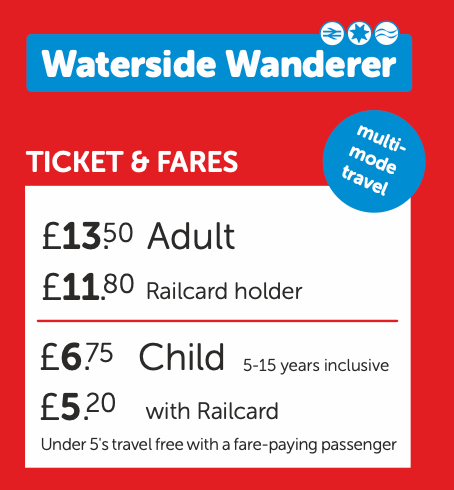 A Waterside Wanderer costs £13.50 for an adult, £11.80 for a railcard holder and £6.75 for a child. Tickets can be purchased from any staffed ticket office at SWR stations included in the scheme or from SWR guards on trains. They’re not available from the ferry or on board buses but can be purchased in advance online and sent by next day delivery post from SWR subject to a rather pecuniary £7.50 charge for the admin and postage costs.