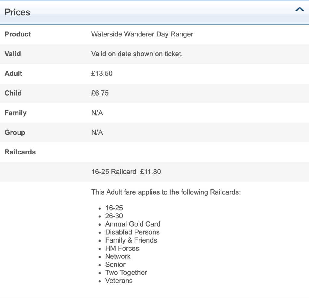 With hindsight I shouldn’t have asked a leading question along the lines of “there’s no discount for Senior Railcards then?” as I’d researched the National Rail Day Ranger website page the previous day and had been surprised to see the Railcard discount was only listed for a 16-25 Railcard holder with Seniors paying the adult fare. So I wasn’t surprised when he replied “no”.