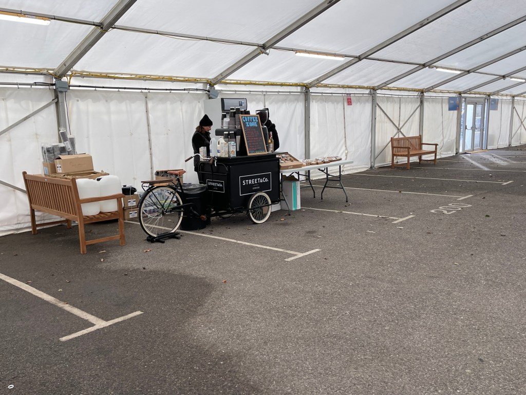 But there aren’t many seats – only four bench seats, and one of those was being used by the coffee stall to store ‘stuff’.
