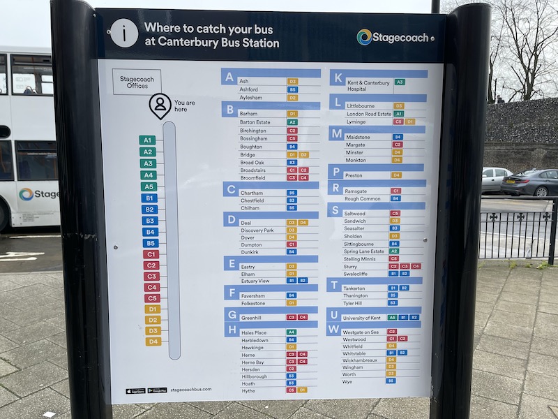 Off-topic for Park & Ride but regarding the where to catch your bus sign at Canterbury Bus Station: