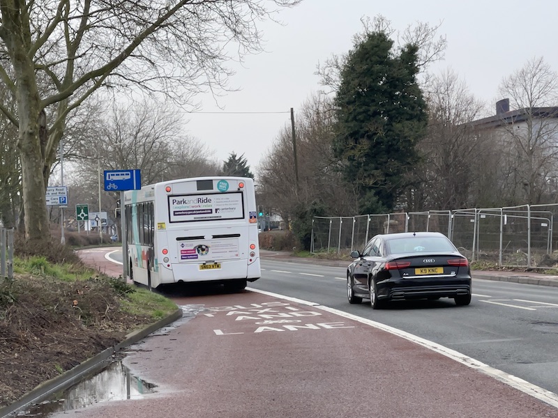 Ironically plans to extend the existing short stretches of bus lane in Sturry Road were shelved in 2018 leading to what is quoted as “passengers facing journey times of more than 20 minutes to travel just one-and-a-half miles”.