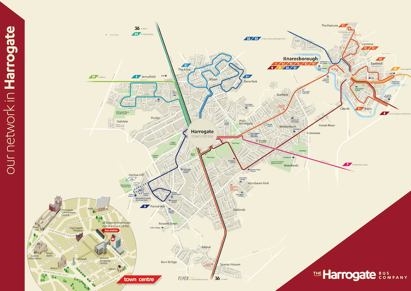 Harrogate’s population is 75,000 with a further 15,000 living in nearby Knaresborough. It’s the epi-centre of Harrogate Borough Council within North Yorkshire County Council. It’s renowned for its excellent bus service but would it pass muster in my A to Z meander around mid-size towns? Would some random bus rides and observations live up to its reputation not least as like many places the local bus companies have been suffering from driver shortages