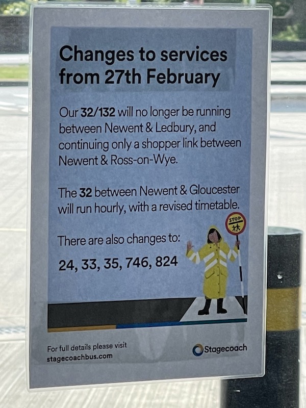 The 35 to Ross has been through a few hands over time but came with the Dukes business to Stagecoach. The 33 from Ross to Gloucester starts from Hereford and historically was the 538 operated jointly by Red & White (Ross) and Bristol Omnibus (Gloucester).