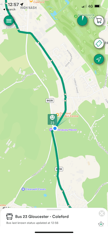 After all that we arrived in Coleford just eleven minutes down at 13:01 but by the time the bus left for the journey back to Gloucester as a route 22 at 13:05, it was fifteen minutes late again.