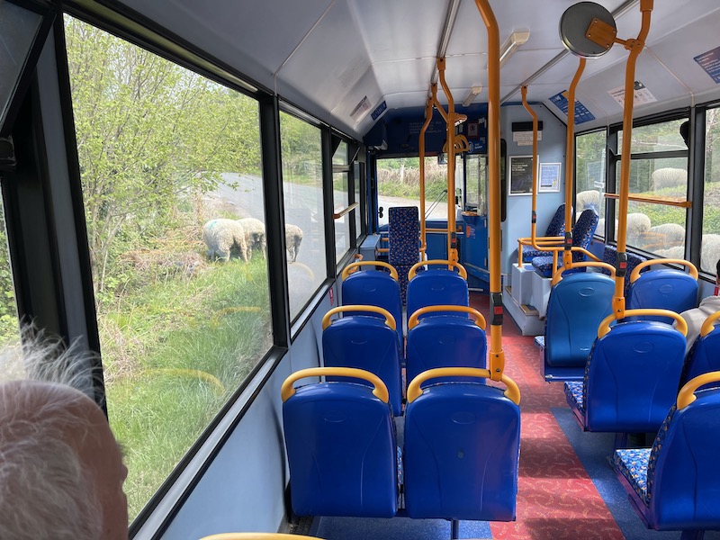 Our refreshed driver boarded and seemed to take for ever to sort himself out – he even closed the bus doors to make sure we all got the message to stay away – even though there was an undercurrent of frustration among all of us waiting as understandably there’d been much tutting about the non appearance of the bus.