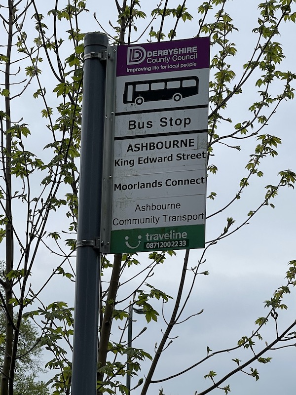 In the event the bus appeared soon after 12:00 and dropped a passenger off. It pulled up a bit further along from the two bus stops used by all Ashbourne’s other bus routes which have the benefit of shelters too.