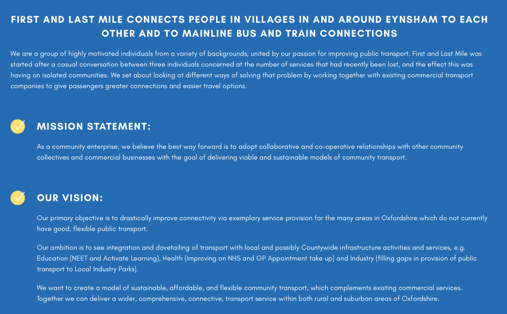 What First and Last Mile are doing can be done across the country if there are volunteers dedicated to restoring their lost bus services. It is not easy and very time consuming and we have been fortunate to have been supported by Oxfordshire County Council but it is possible. It is a cheaper model than Demand Response to operate but there is still a considerable financial burden to sustain these services.