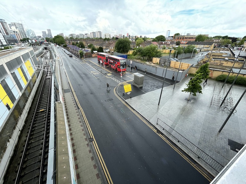 And I doubt the westbound bus stop alongside the Elizabeth Line tracks at Custom House station would pass any accessibility rules, yet alone guidelines.