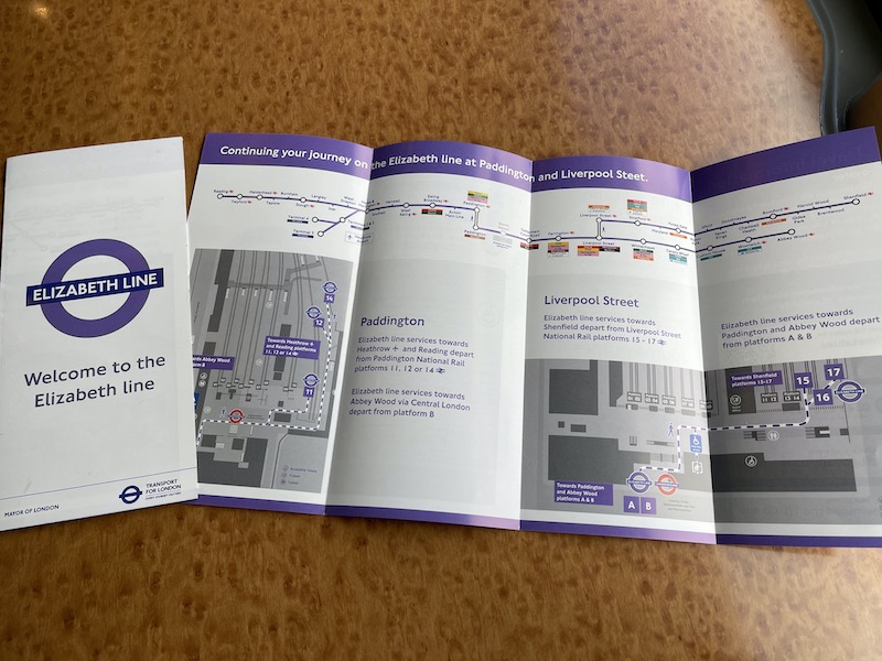 There’s a no expense spared leaflet about the Elizabeth Line with details of how to interchange at Paddington and Liverpool Street with the outer sections of the Line ….