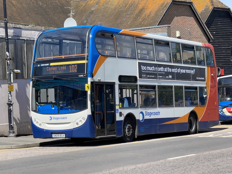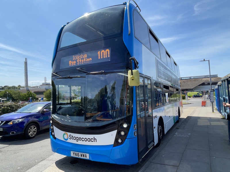 Although the route (like another Stagecoach operates in north Devon) has long been branded “Wave” with bus stops throughout the route displaying “Wave” logos – including on sister route 99 which runs westwards along the coast from Hastings to Eastbourne – none of the buses I saw on routes 100 and 101 between Hastings and Rye on my journey carried the branding, so it looks like it might be on the way out as part of Stagecoach’s centralised corporate hold over such matters.