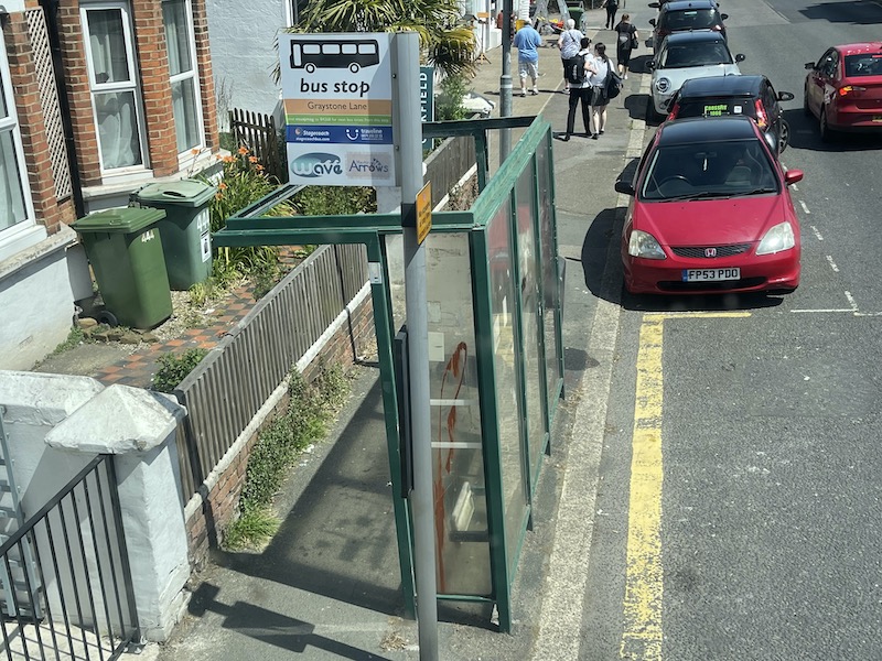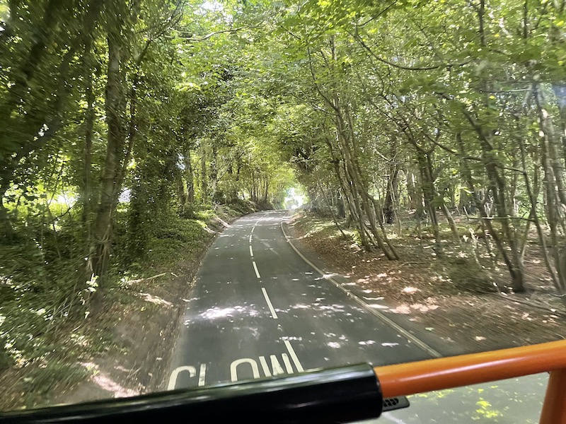 It was a lovely sunny hot June day making for a very pleasant ride. Even a bus shelter was getting in the open top spirit as we passed through Ore.