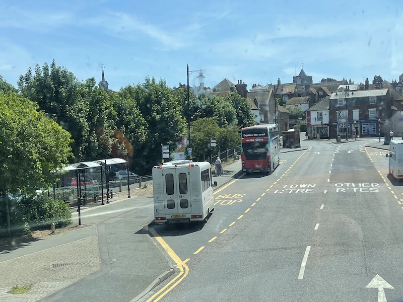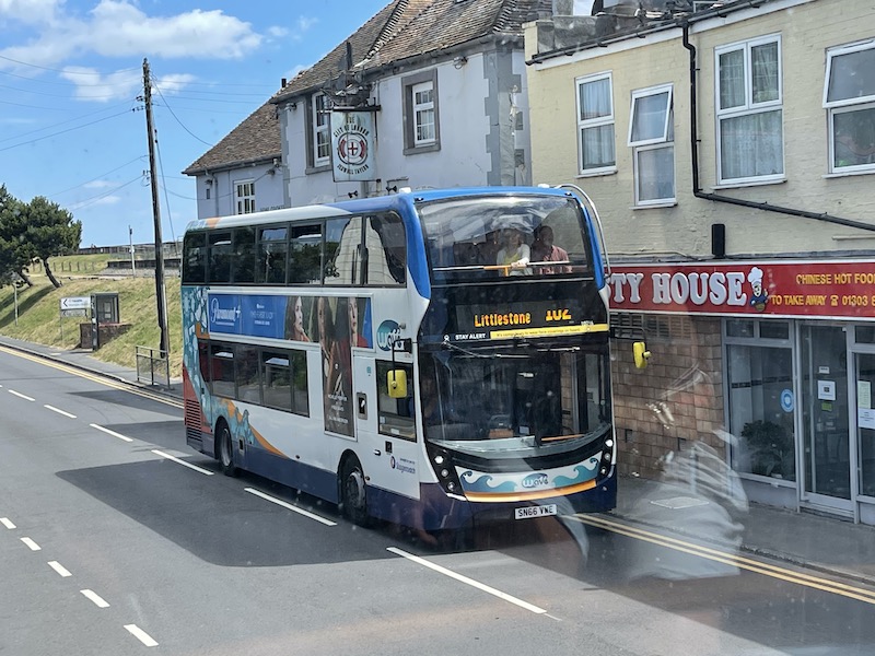I’d originally planned a ride all the way from Hastings to Dover on Stagecoach’s long coastal bus route branded “Wave” between East Sussex and Kent skimming along the edge of Romney Marsh. And then I remembered buses haven’t run right through for some time with the route split at Rye. Still, at least that gives time for a comfort stop.
