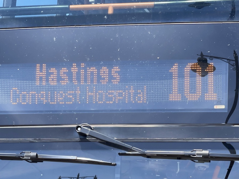 I caught the 10:53 route 100 from Conquest Hospital on the northern edge of the town.