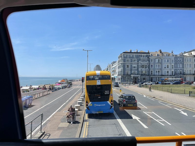 We then played cat and mouse the whole way along the route to Eastbourne with our bus maintaining its scheduled timings and the late runner still 20 minutes behind schedule. It’s a shame some intervention from ‘control’ wasn’t forthcoming.