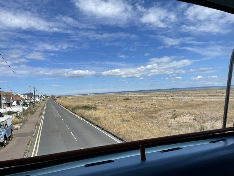 Although it is now a longer route, diverting the bus along the coast road between New Romney and Lydd then on to Camber does give an idea of how desolate the Marsh is.