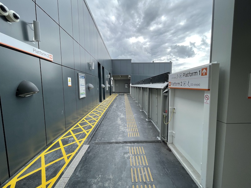 The exterior of the new station building is certainly prominent and while it’s an improvement on what went before, especially the rather nice landscaping and foliage outside, the orange colouring already looks dirty to me, although I think that’s part of the intended design.