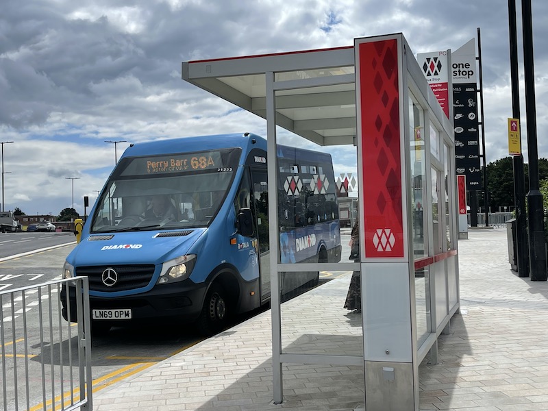 ….. which is actually four bus stops and shelters (albeit the nice new smart Travel for West Midlands high spec shelters) in a large lay-by off the A34 Birmingham to Walsall road.