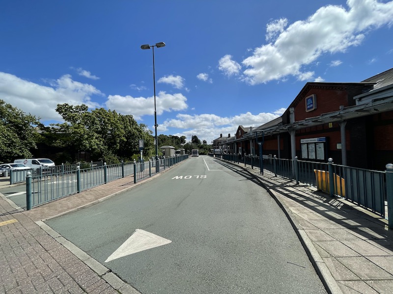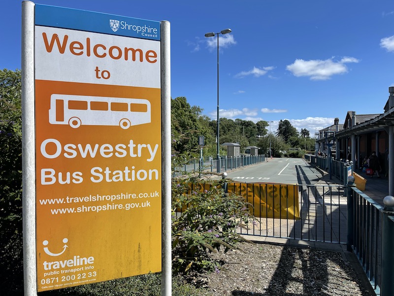 Oswestry does have a bus station which is conveniently located albeit a bit far from the town’s main retail centre. However the five short town routes don’t actually serve it but instead use the Sainsbury’s store about a 3 minute walk away as their town centre focal point.