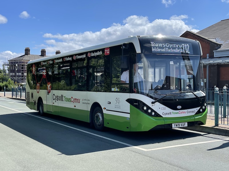 ….. and the TrawsCymru branded hourly route T12 from Wrexham to Oswestry, Welshpool and Machynlleth operated by Lloyds Coaches.
