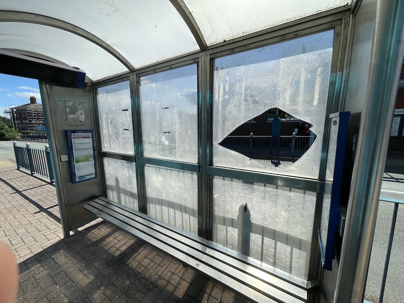 The bus stop served by bus routes other than town routes at Sainsbury’s could do with some much needed TLC.