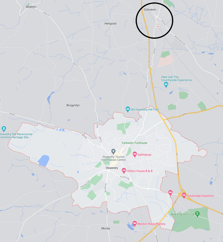 The town is located on the western fringes of Shropshire just five miles from the Welsh border. Wrexham lies 15 miles north, Shrewsbury is 19 miles south east and Welshpool is 15 miles south. The A5 forms a north south bypass to the east of the town.