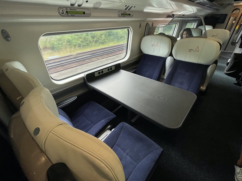 …. the otherwise exact same standard in the next door first class coach (which can be reclassified as standard premium as required by the addition of appropriately worded headrest covers) but both classes now sport wireless charging options on the tables for those smartphones so enabled.