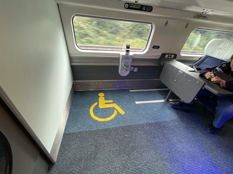 Spaces for wheelchair users have been clearly delineated in both standard class….