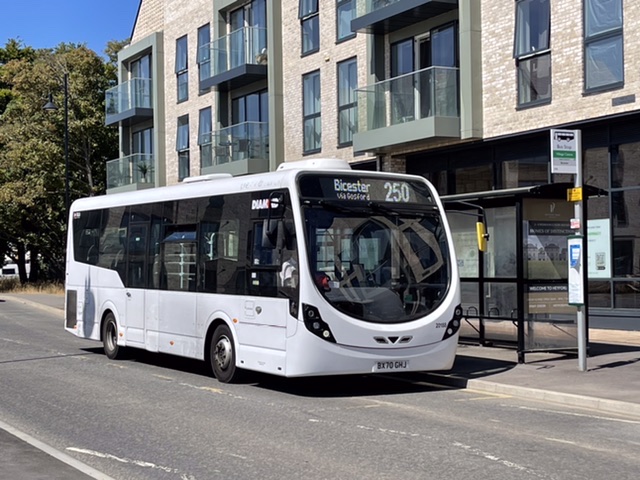 It’s reported Oxfordshire County Council later this year is planning to replace hourly tendered route 250 which currently serves the expanding residential development known as Heyford Park, as well as various small villages and hamlets, on its route between Bicester and Oxford. partly with a shuttle bus between Bicester and Heyford Park and the rest of the route, including the villages, by a new rural DRT operation branded Pick-Me-Up.