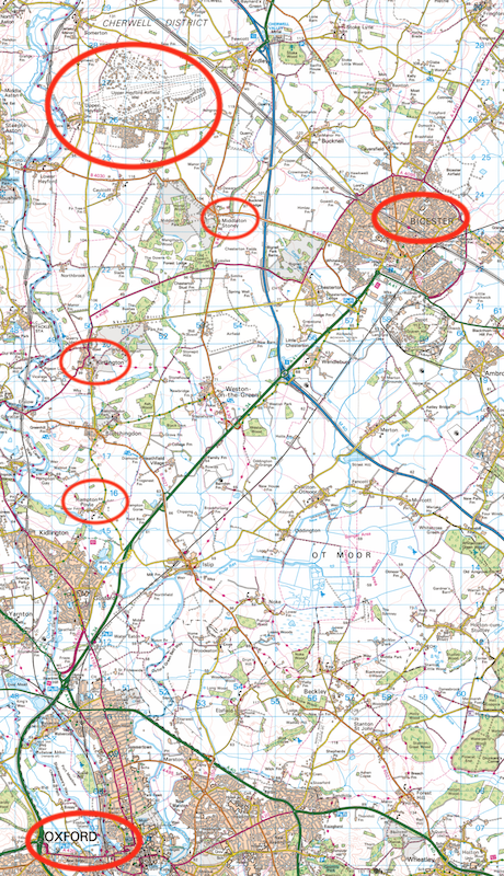 Heyford Park is a huge residential development underway on the disused former US Air Force base housed at RAF Upper Heyford, about six miles west of Bicester, circled top left on the above map.